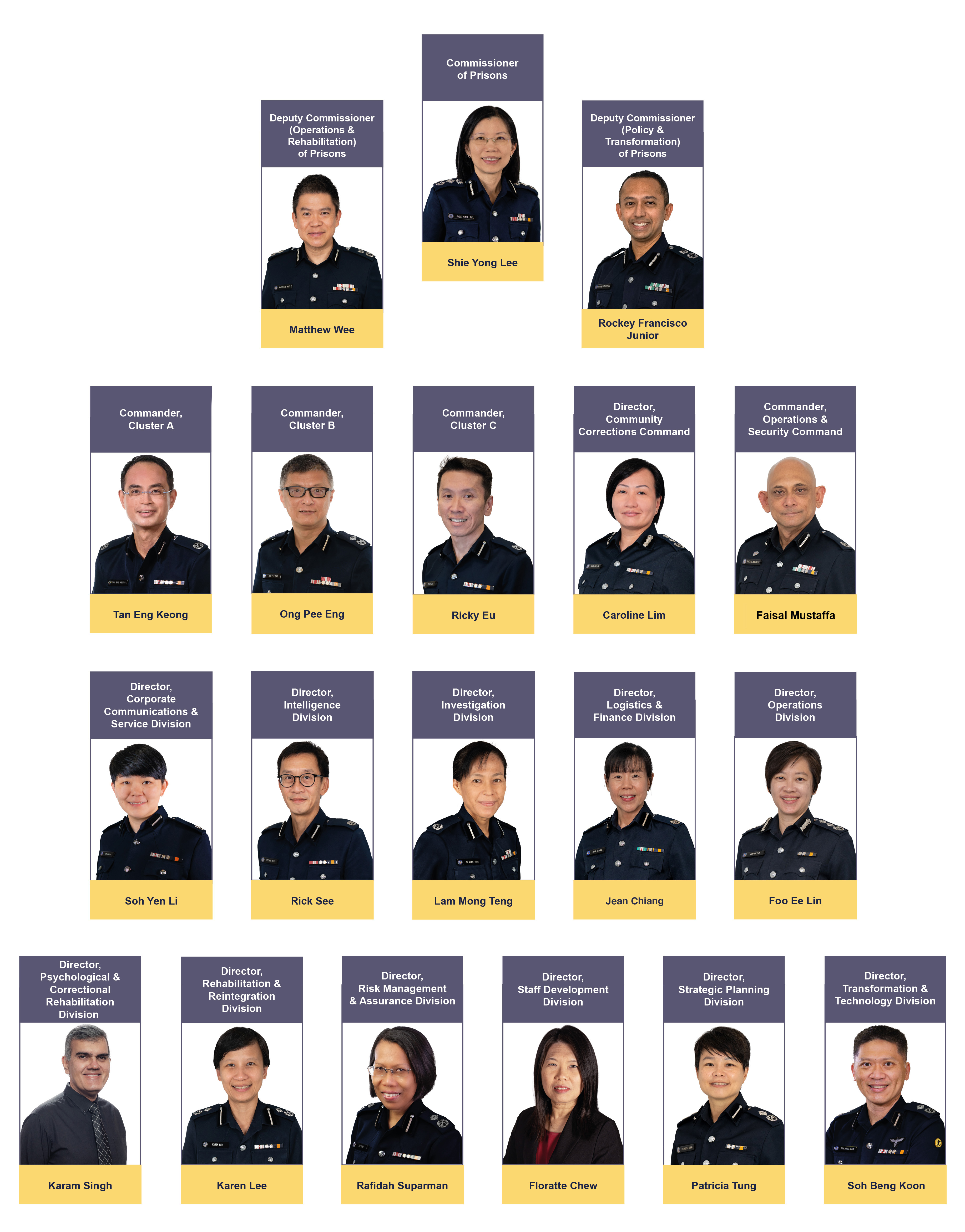 SPS currently administers 14 institutions, Selarang Park Community Supervision Centre (SPCSC) and Community Rehabilitation Centre (CRC). They make up SPS’s line units and are grouped under five Commands: